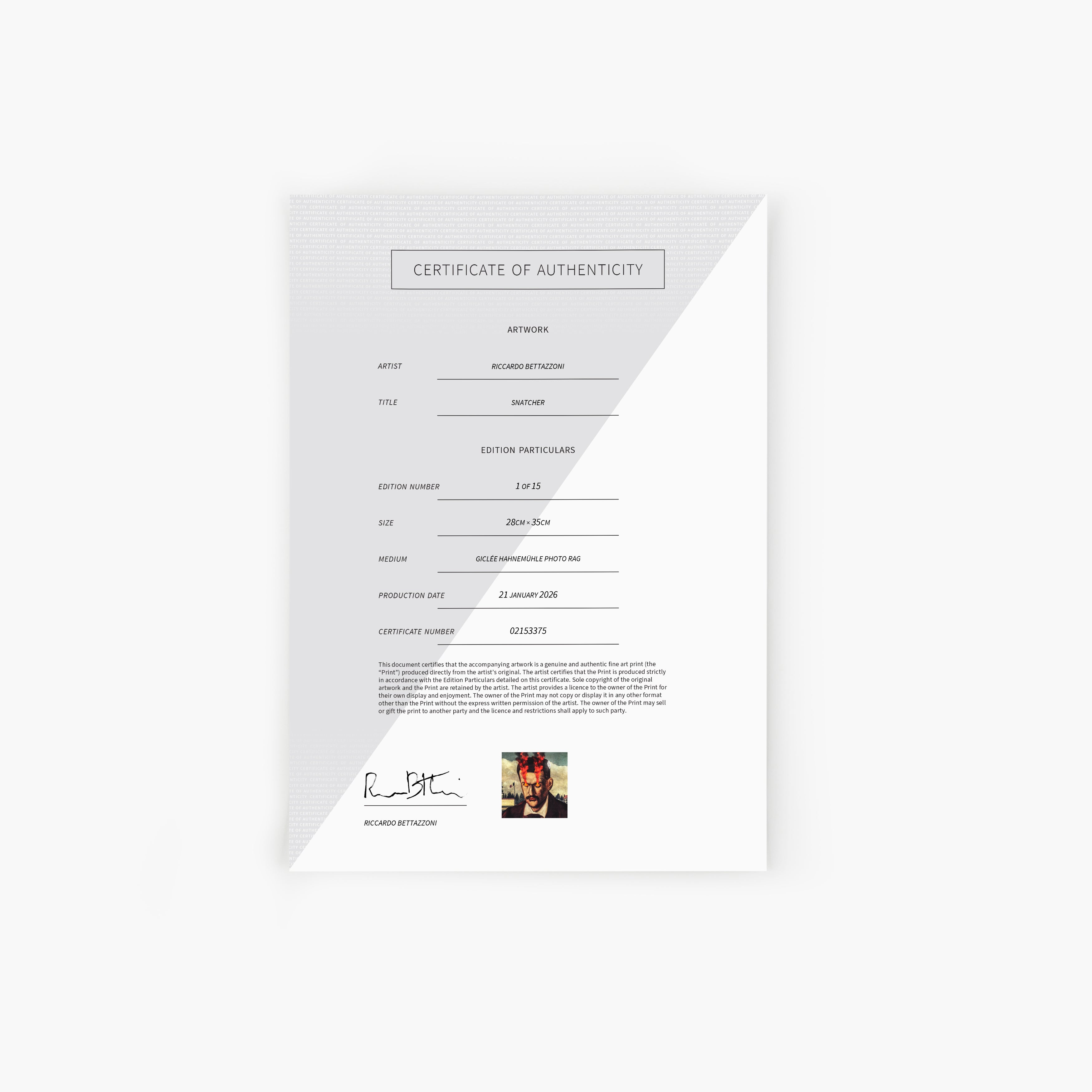 - Presented on acid-free, archival cotton Photorag Giclée paper from Hahnemühle